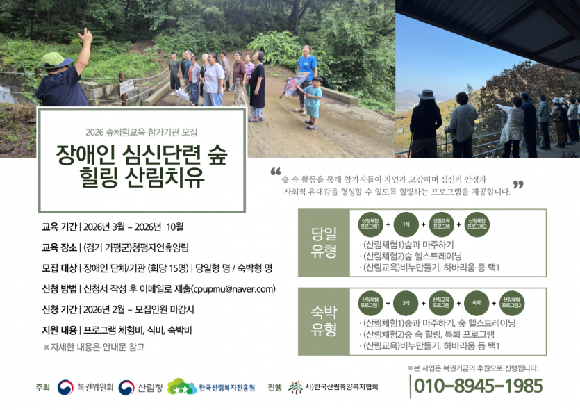 [2026 숲체험·교육사업 참가자모집]_장애인 심신단련 숲 힐링 산림치유
